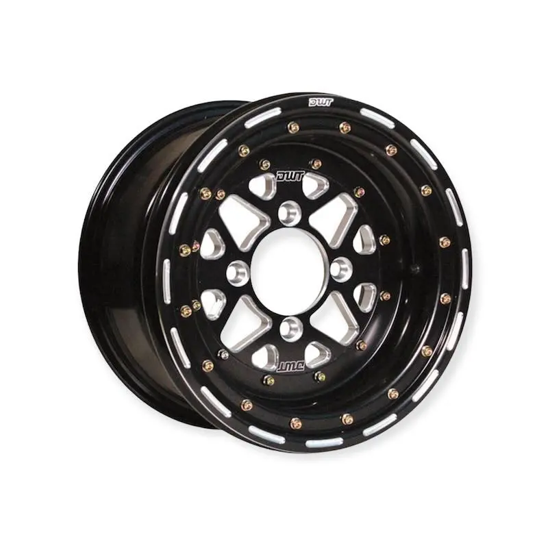 Jante usiné ayant un centre taillé dans la masse et démontable. Dimensions: 14x8 5+3 4x156 Cette jante quad révolutionnaire est démontable en 3 parties, elle peut être réparé si besoin, et permet de faire évoluer la jante en fonction de l'utilisation. Aluminium traitée 6061 haute température, super léger, super résistant, épaisseur .190" Disponible en 12 "et 14" en finition noire Montage facile des pneumatiques Extérieur Beadlock, inérieur bord roulé. Fabriqué aux U.S.A. Article DOUGLAS WHEELS