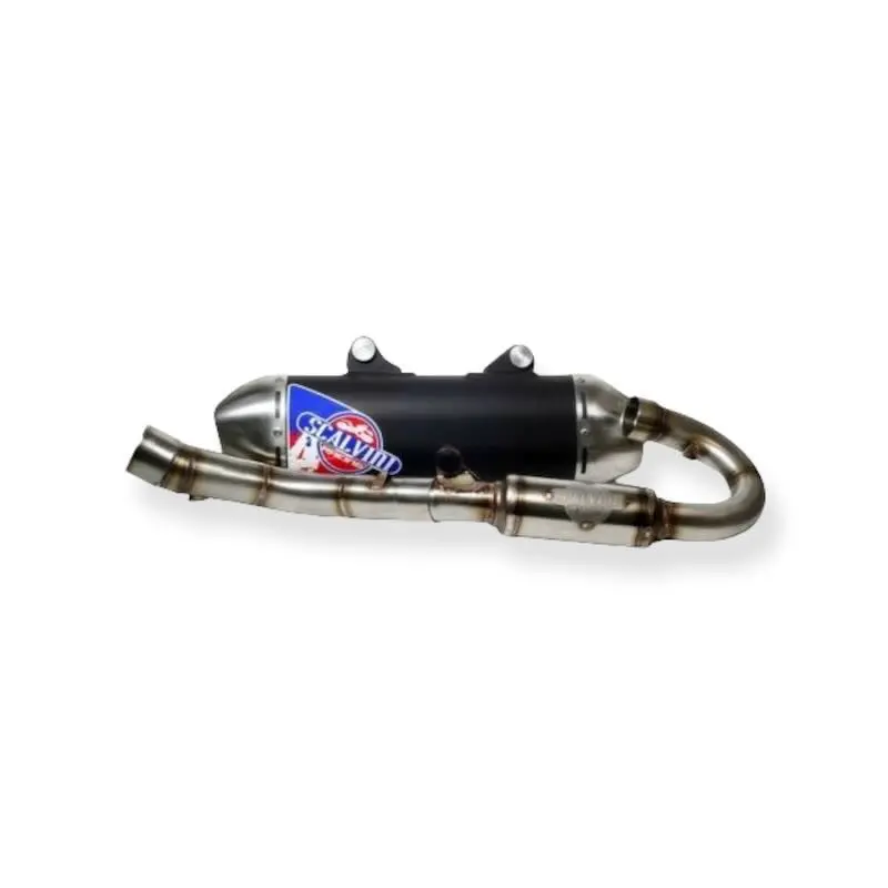 LIGNE CPLT SCALVINI KTM SX450F 19/20 Nous sommes fiers de présenter la nouvelle ligne à quatre temps de Scalvini Racing. Le collecteur en acier inoxydable est entièrement soudé à la main ; Nous avons mis à jour la powerbomb en termes de performances et de style. Le silencieux en aluminium avec embout en acier inoxydable a le support principal directement soudé sur le corps , de sorte que le montage sera plus facile, plus rapide et plus résistant. De plus, le silencieux est anodisé avec un traitement spécial pour résister à des températures élevées Un système DBkiller intégré assure un faible niveau de bruit (courses approuvées). Le prix est pour le système d'échappement complet (ce n'est pas compatible avec les pièces OEM si vendu séparément