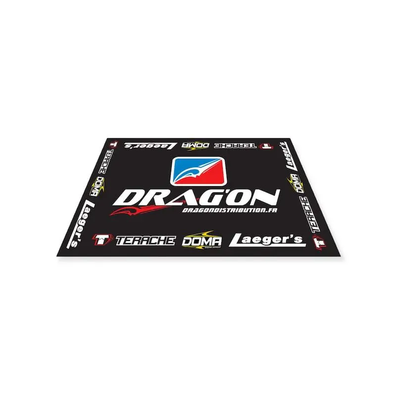 Tapis de sol environnemental officiel Drag'on quad et moto. Idéal pour les compétitons motocross, quad cross, enduro, quaduro, sable... En fibre spongieuse (polychlorure de vinyle), ce tapis homologué FFM / FIM résiste aux hydrocarbures et au feu. Lavable à haute pression. Dimension : 200 x 140 cm. Le tapis absorbant est obligatoire dans les parcs coureurs, il protégera également le sol de votre atelier ou garage.